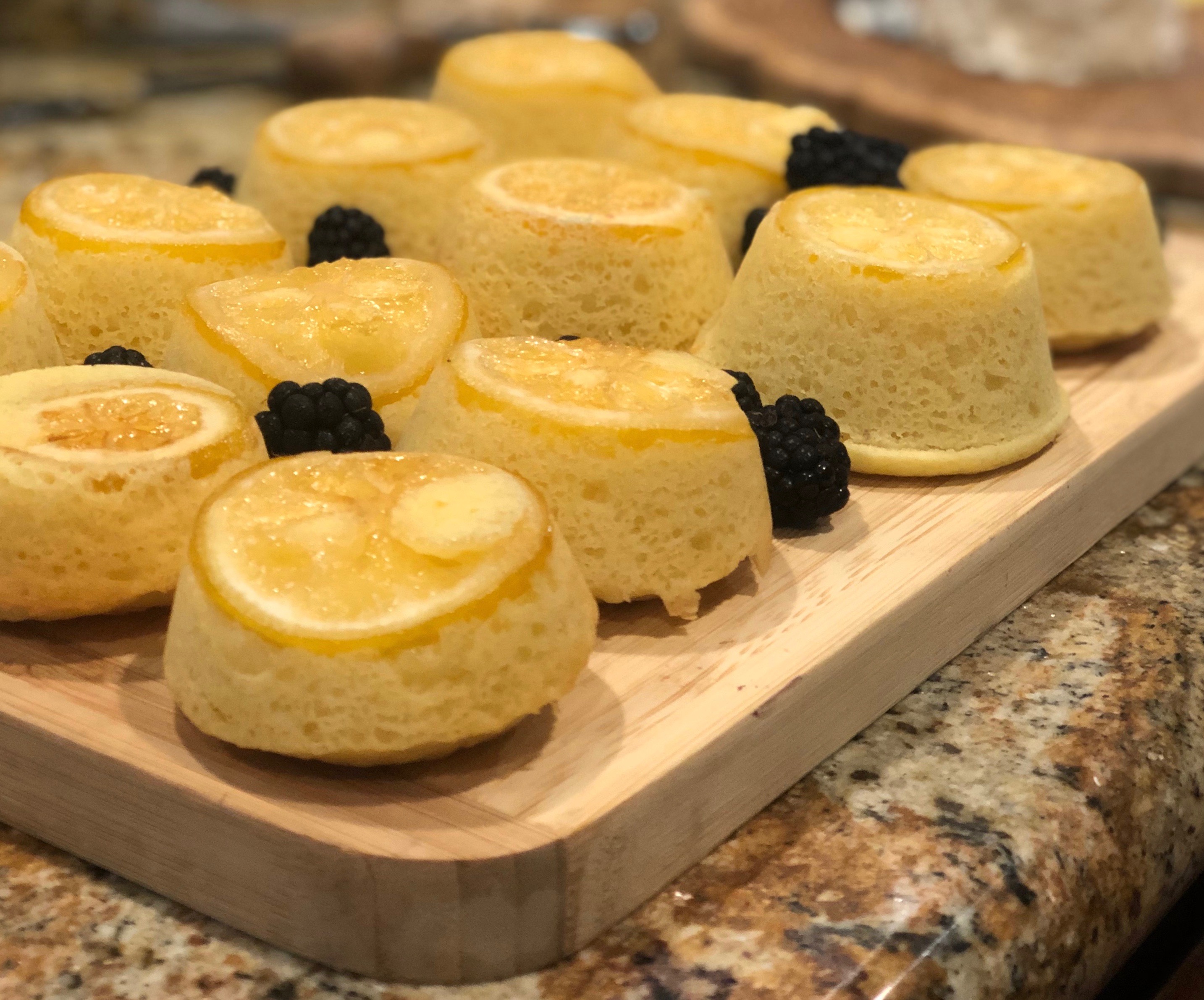 Preheat oven to 325°F. Grease a muffin tray and then lay a candied lemon slice in each muffin cup.